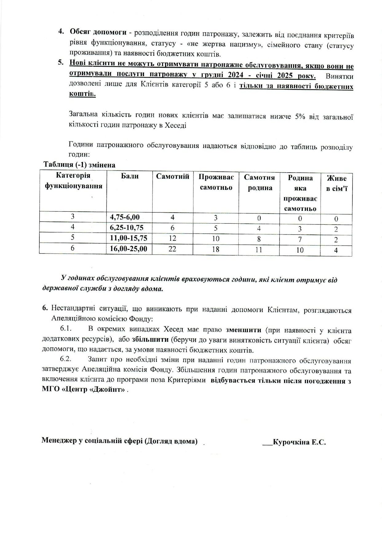 Критерії надання благодійної допомоги годин патронажу для клієнтів Хеседу