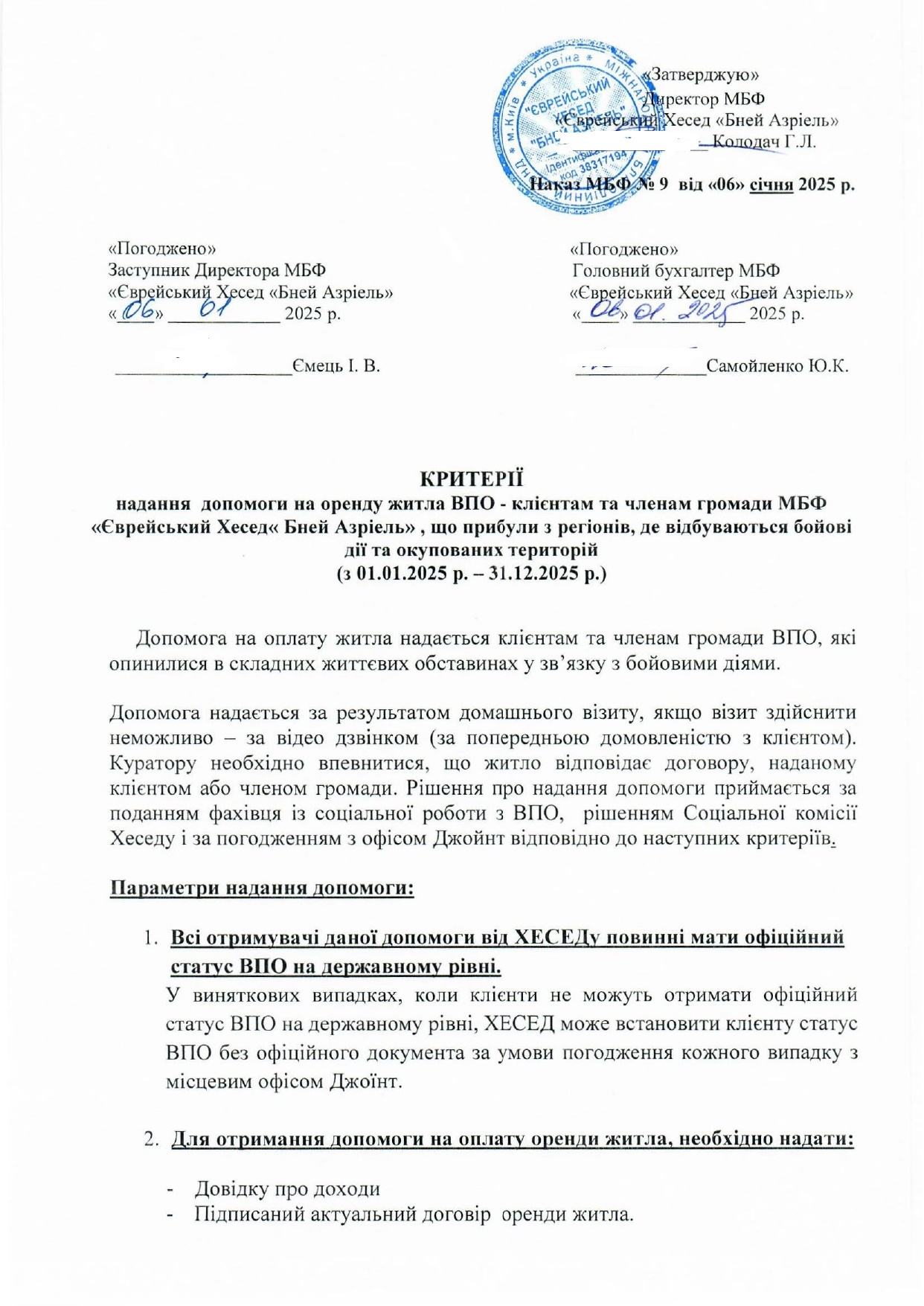 Крітерії надання допомоги на 1 квартал 2025 року: Програма Банківська карта