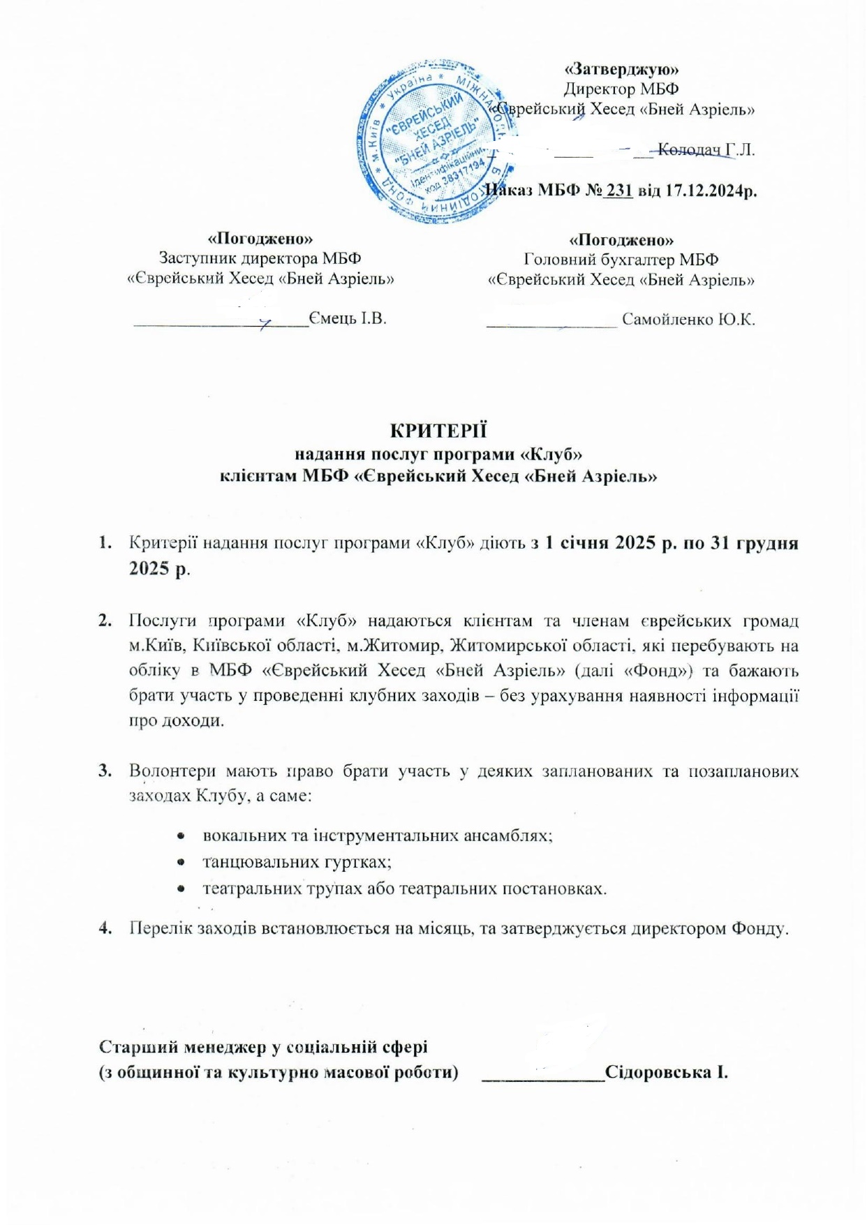 Програма "Клуб"-2025: критерії надання благодійної допомоги клієнтам