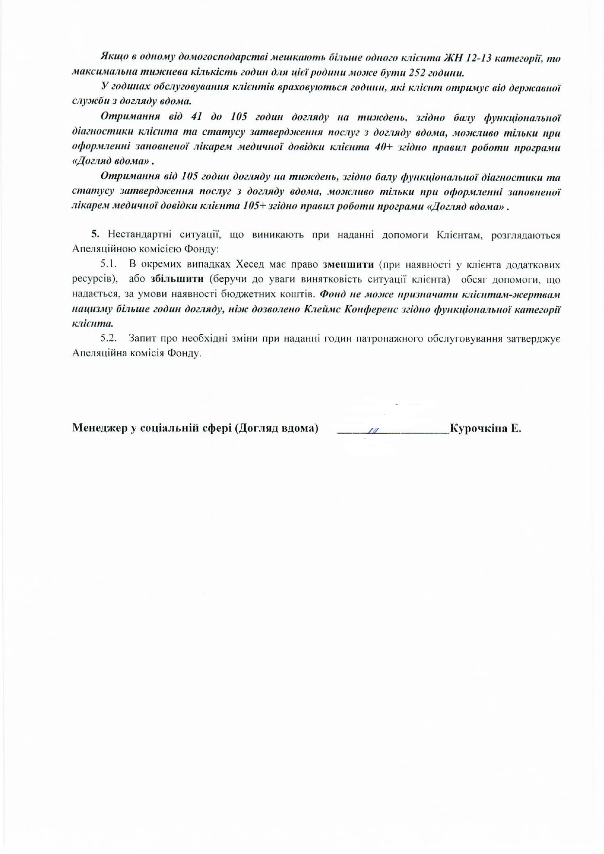 Criteria for providing charitable assistance for patronage hours for Hesed clients