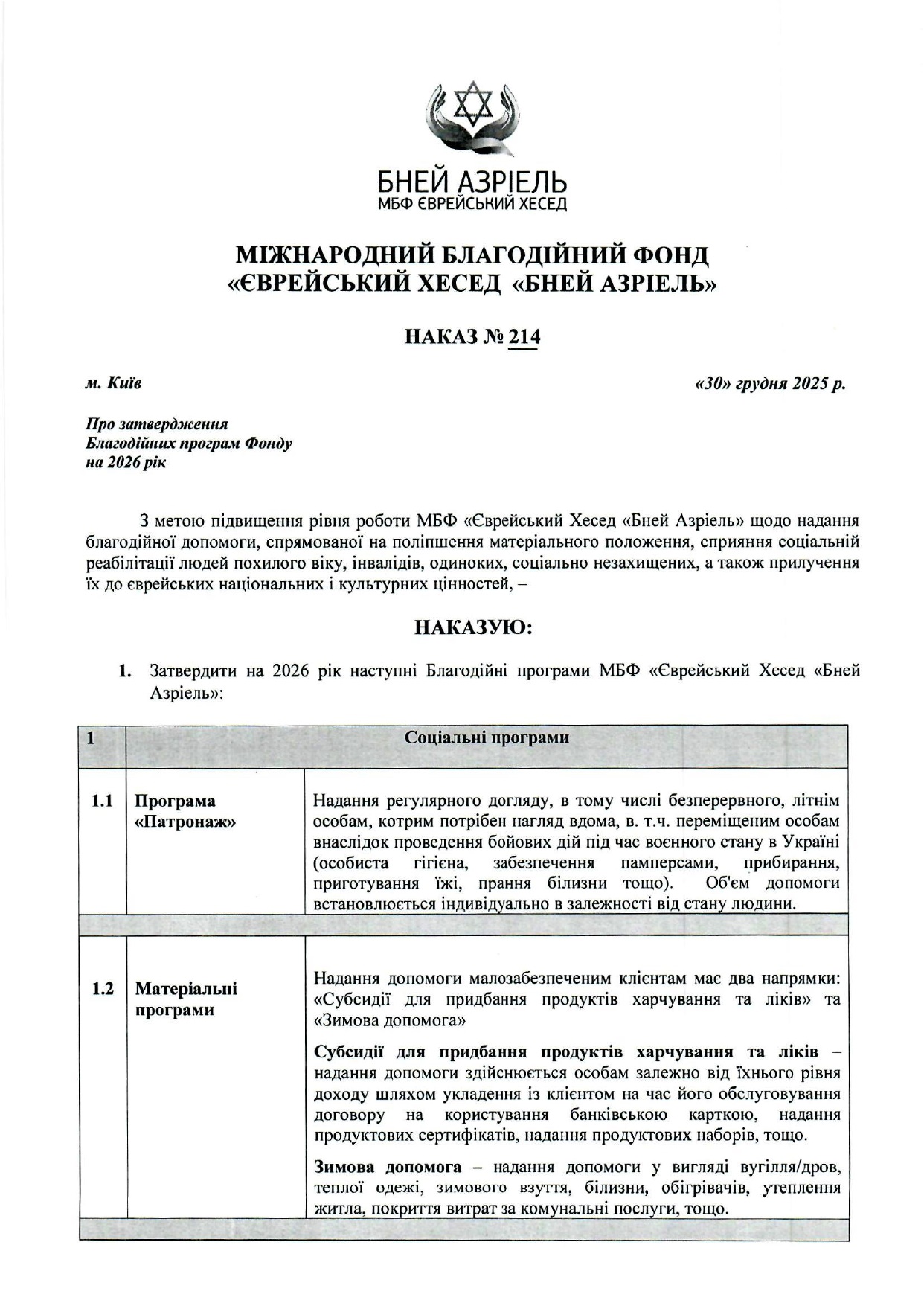 Щомісячна благодійна допомога для ВПО у 2026 році