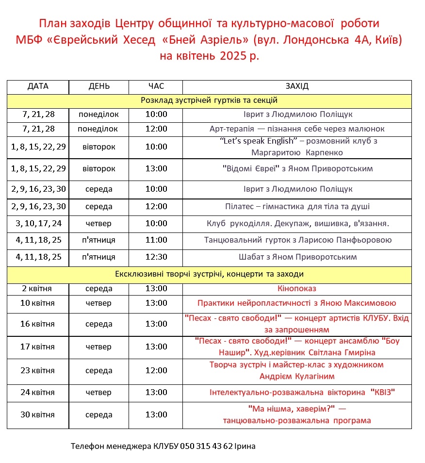 - Бер 24, 2025 Клуб "Хесед" запрошує до гуртків та зустрічей!